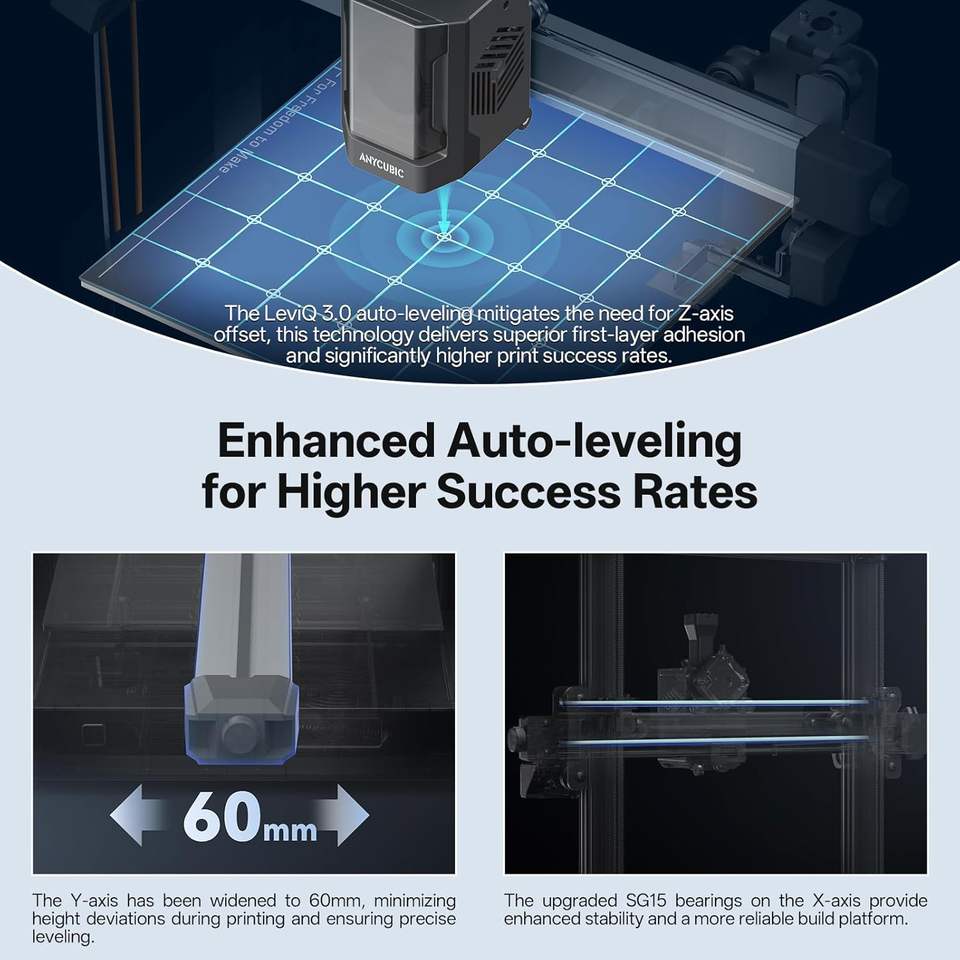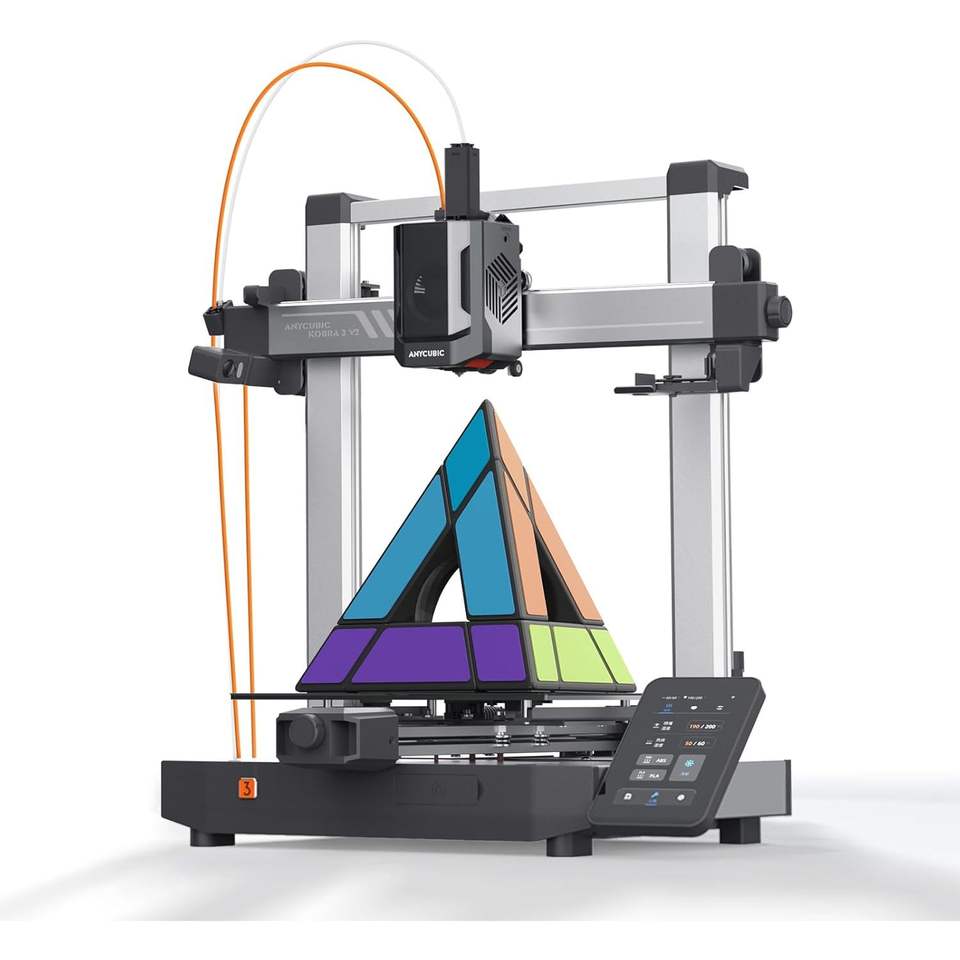 Imprimante 3D Anycubic Kobra 3 V2 220x220x250 mm, technologie FDM, avec caméra IA, nivellement automatique et plateau en verre trempé