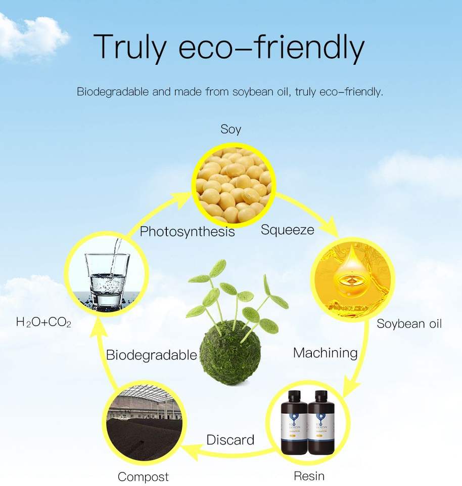 Résine Anycubic à base de plantes pour imprimante 3D, faible odeur et sécurité, résine UV 405 nm à base de plantes, résine pour imprimante 3D Anycubic