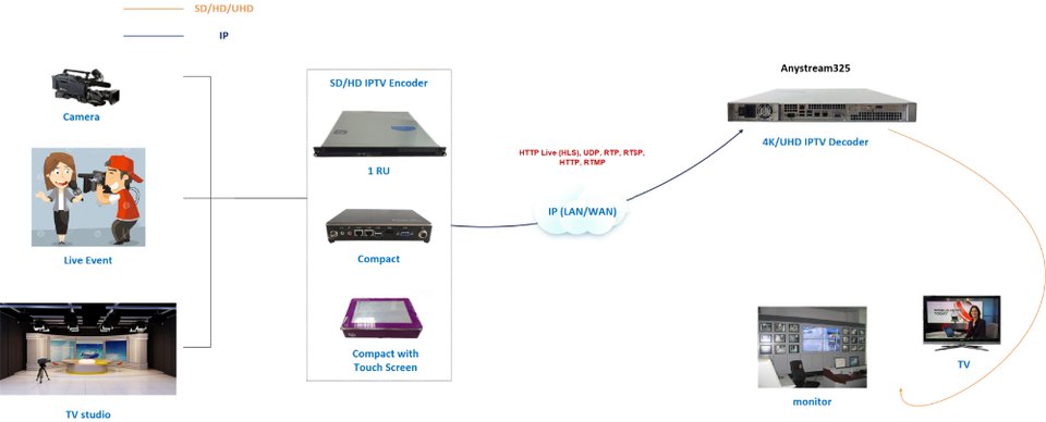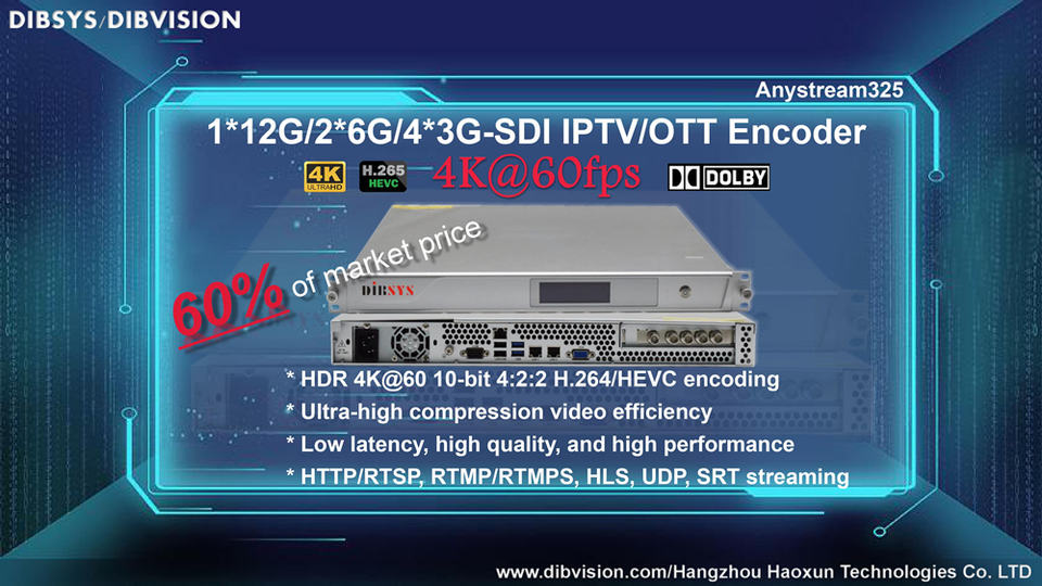 (Anystream325) Encodeur IPTV H265 4K avec entrée 12G-SDI