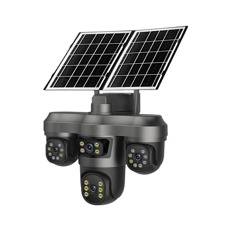 Caméra de surveillance extérieure solaire AoV à 4 objectifs, vision nocturne couleur, stockage cloud, interphone vocal, suivi automatique
