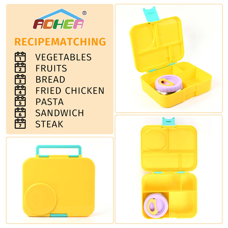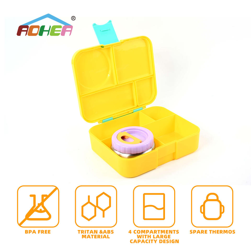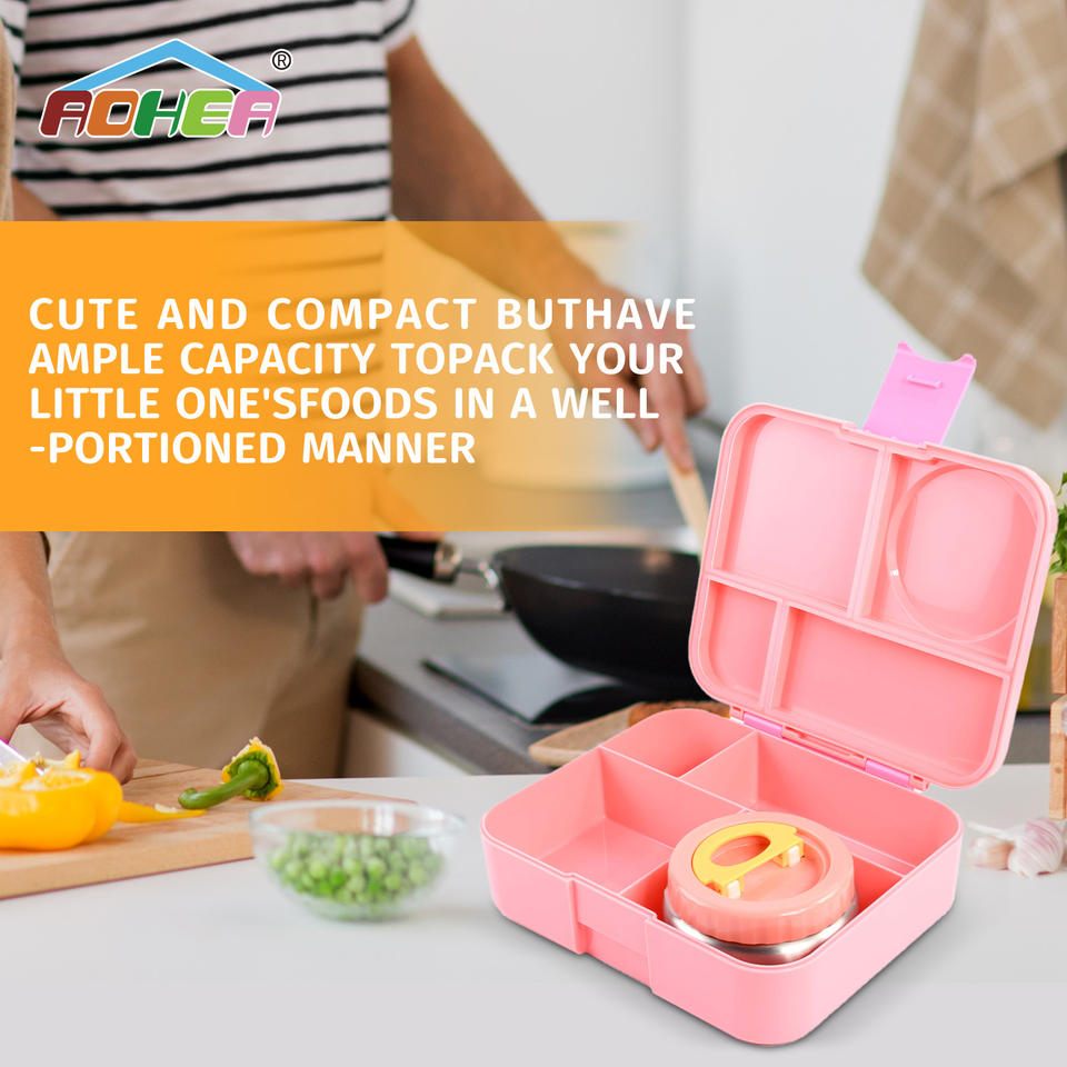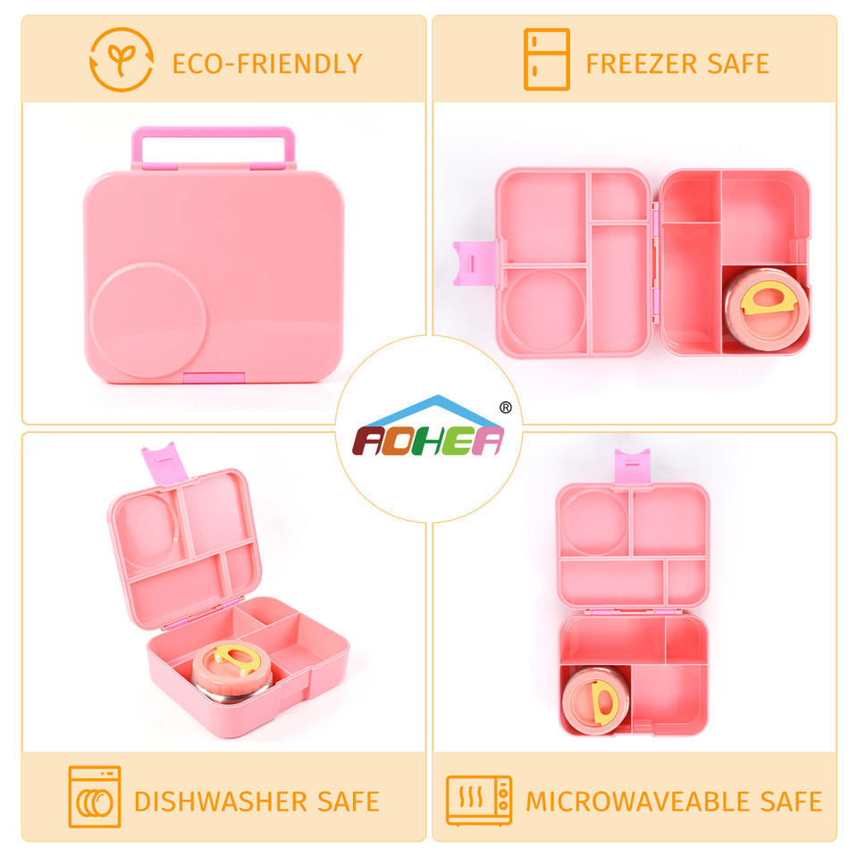 Aohea Boîte à lunch Bento AVEC bocal en acier inoxydable 304 Boîte à lunch thermique portable 4 compartiments Conteneurs étanches pour enfants