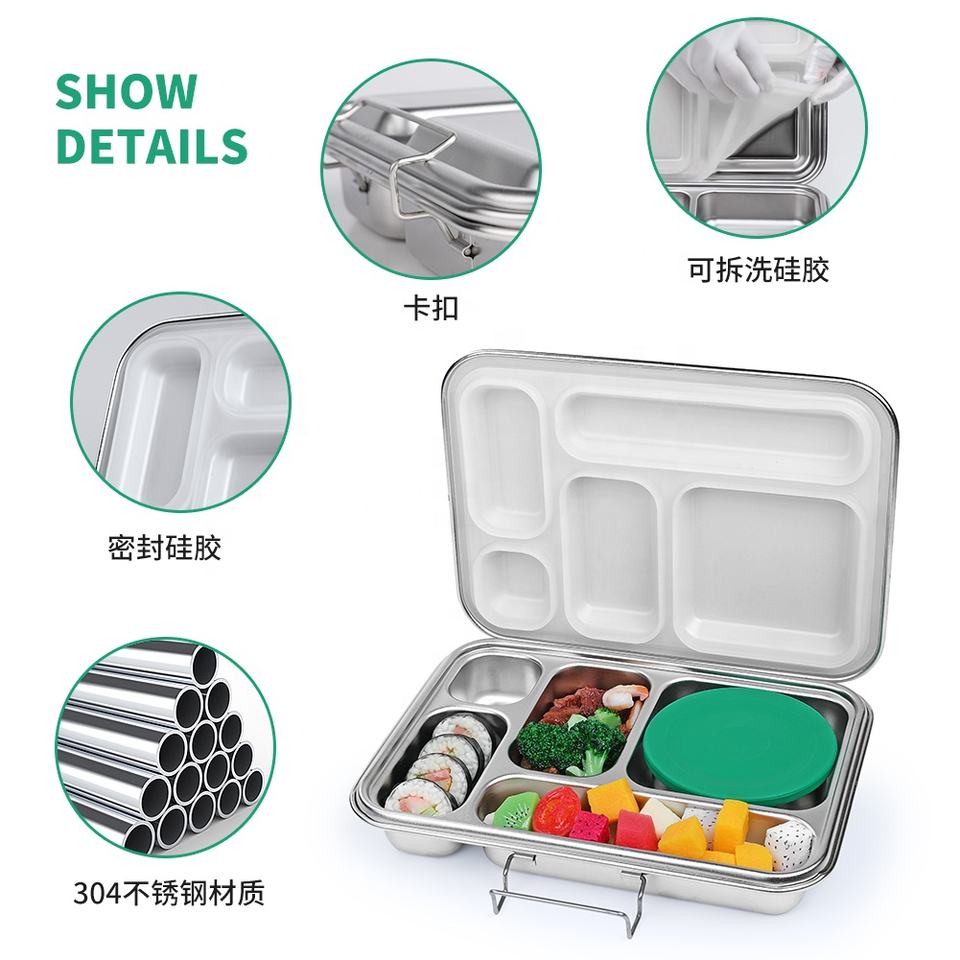Boîte à lunch bento personnalisée pour enfants Aohea, retour à l'école, 5 compartiments, boîte à lunch en acier inoxydable pour enfants