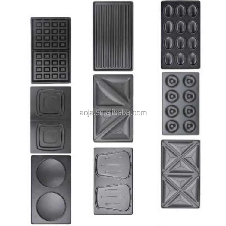 Aoja machine à petit-déjeuner multifonction sandwich 3 en 1 mini quatre 3 en 1 machine à petit-déjeuner pièces de machine plaques de gaufres un 3 en 1