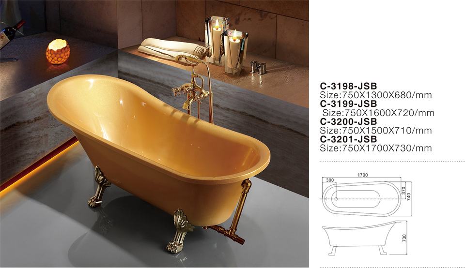 Baignoire autoportante en acrylique dorée rétro Aokeliya, tendance, 4 pieds