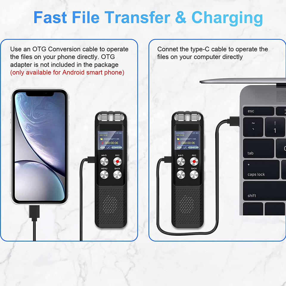Aomago L87 Enregistreur vocal numérique avec réduction du bruit Lecteur MP3 de 48 Go de mémoire pour l'enregistrement sonore clair et la dictée