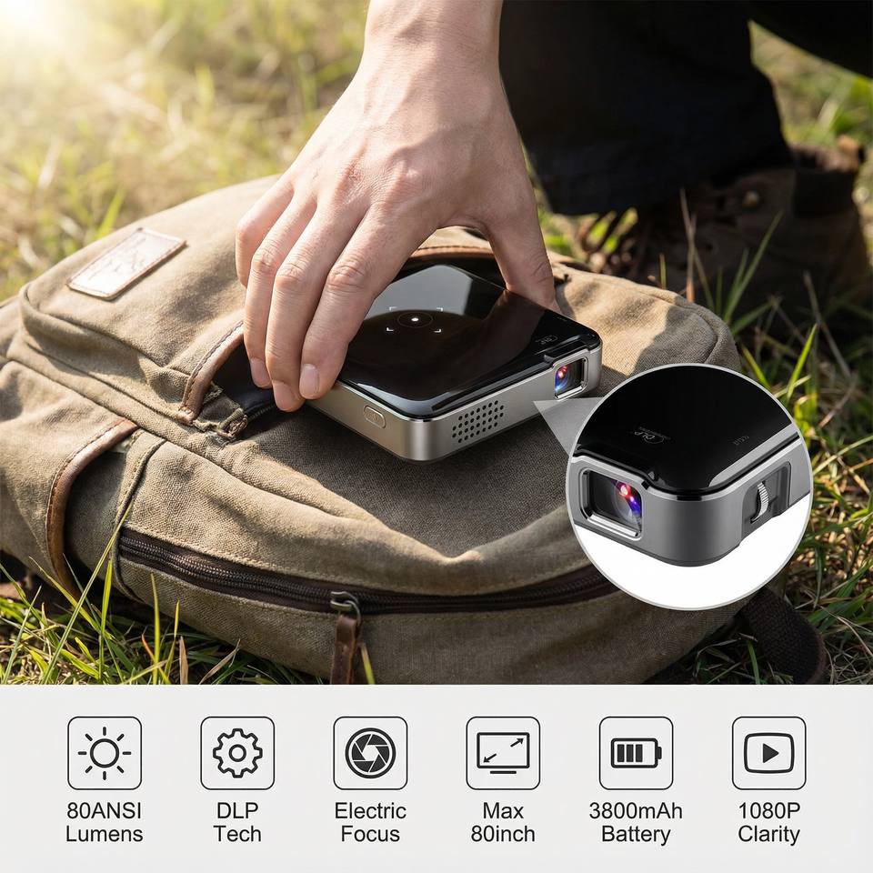 Aome Factory P60 Mini projecteur DLP de poche 1080P vidéo Smart View LED 2G RAM OS Support manuel Home cinéma pour cinéma en plein air