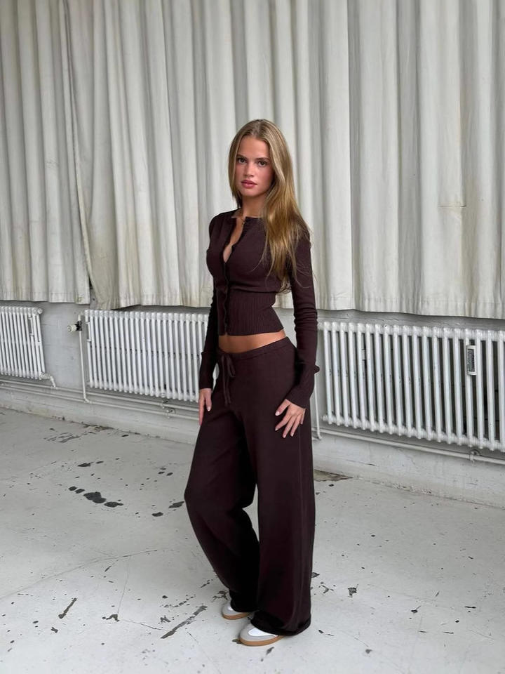 Ensemble Deux Pièces Aoyema Personnalisé de Haute Qualité, Nouveau Style, Sexy, avec Haut Ajusté et Pantalon Décontracté Taille Basse pour Femme