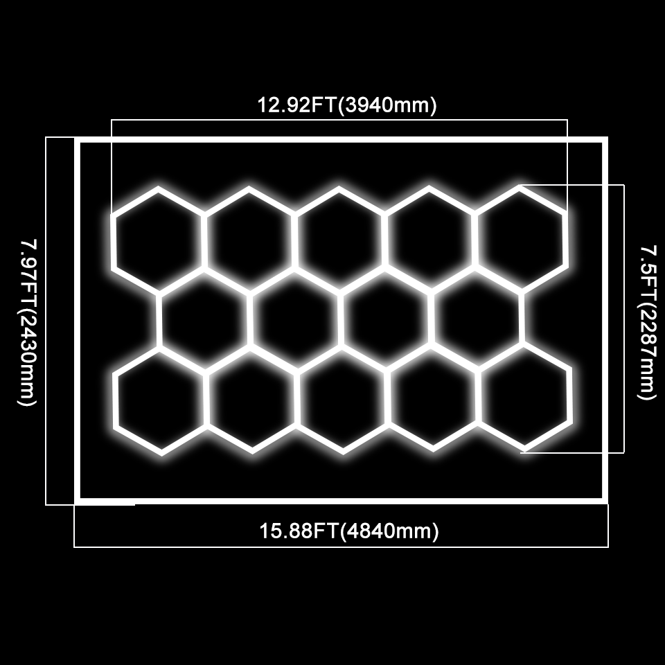 Aoying Haute Qualité 14 Hexagonal 6500K Blanc RGB Nid d'Abeille Plafonnier Hexagone Garage Lumière pour Garage Atelier GYM Eclairage