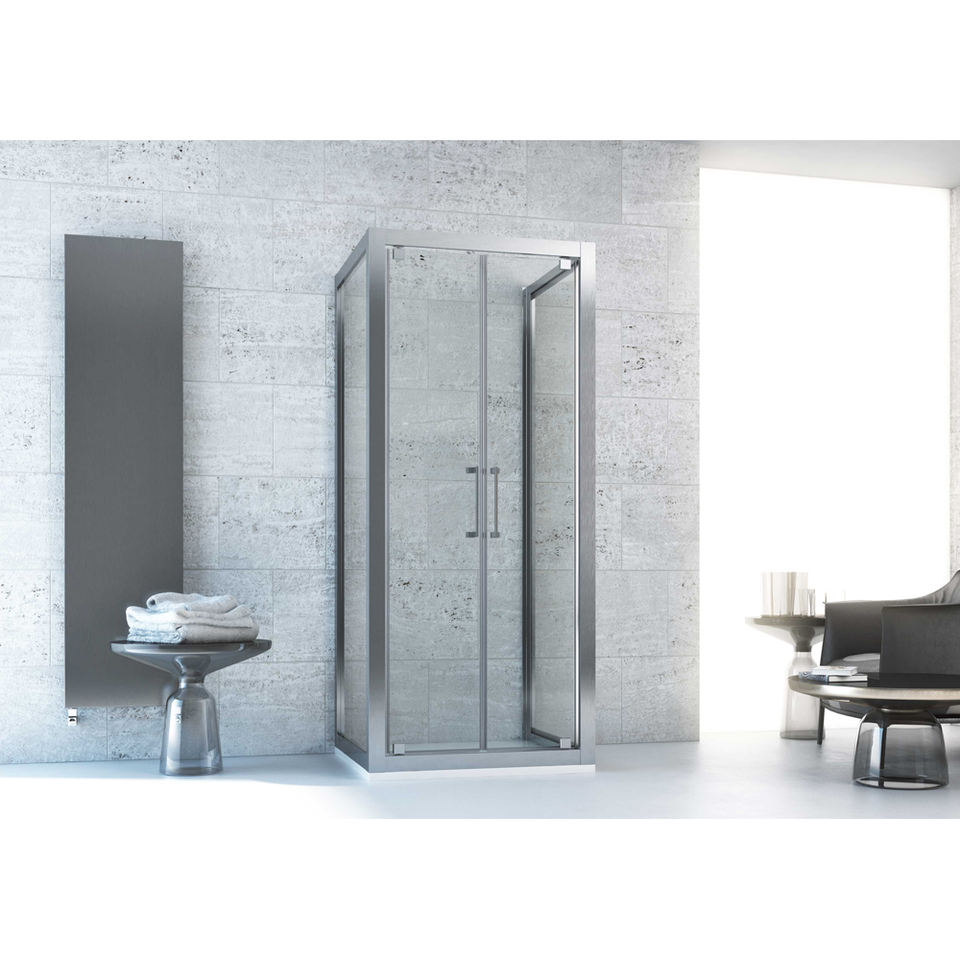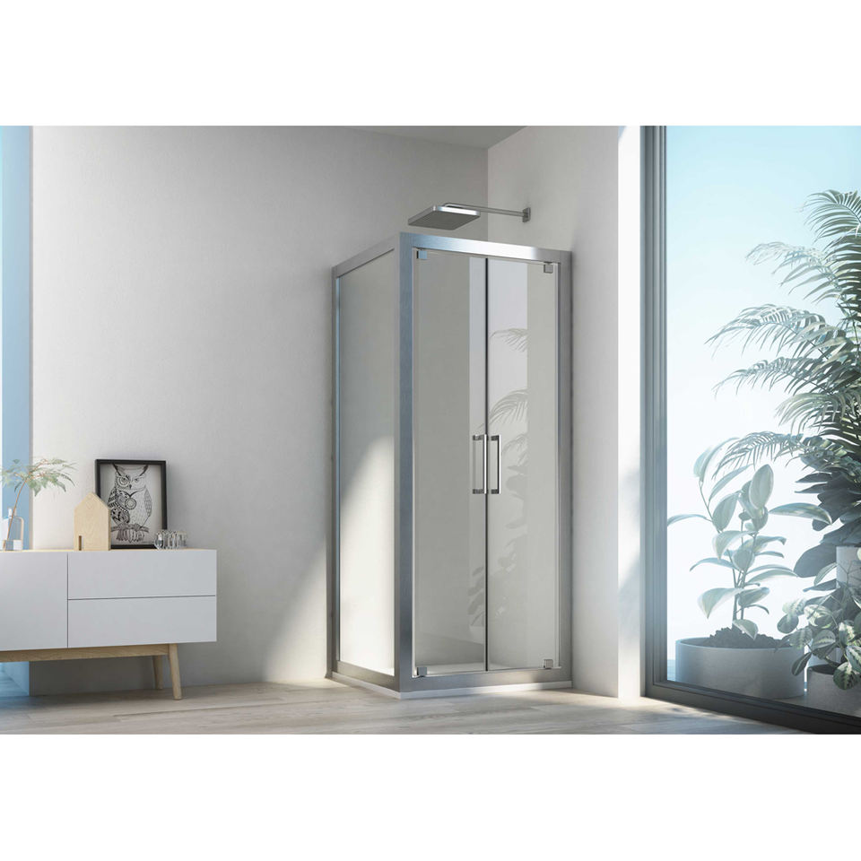 DescriptionSubCategory:OXI.SLIDE DOUBLE HINGED SHOWER DOOR IN TRANSPARENT GLASS
