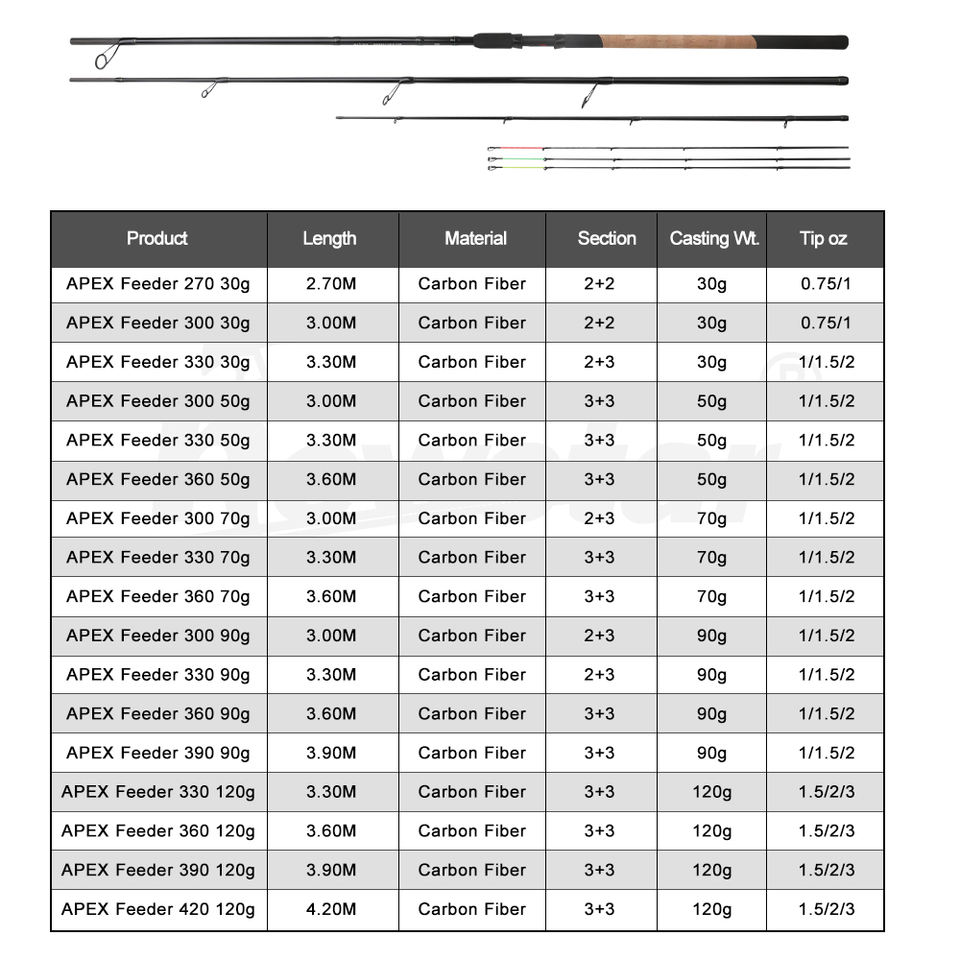 Canne à pêche Apex Feeder 3,0 m 30 g en carbone avec pointe Quiver pour la pêche au finesse et au ledding, idéale pour la pêche en eau calme aux roches et au tench