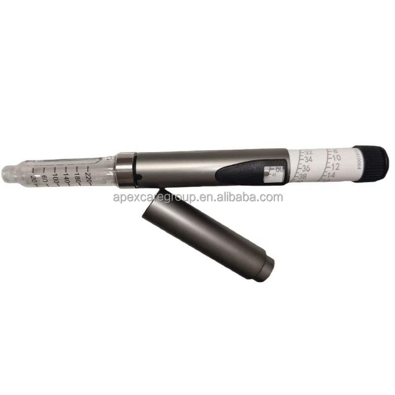 Stylo d'injection réglable en métal ApexCare 61U réutilisable, compatible avec les cartouches de 3 ml pour les tests de soins humains