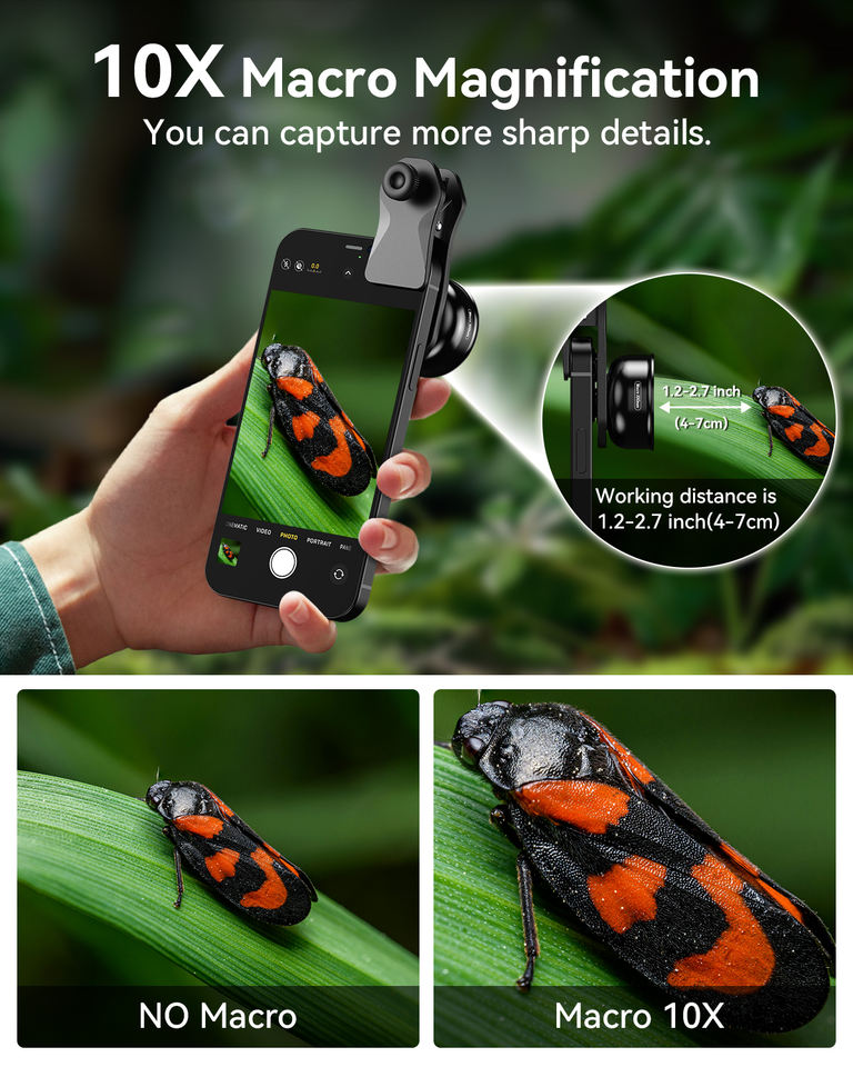 Objectif macro Apexel 100 mm très vendu pour appareil photo de téléphone, photographie mobile, objectif de grossissement pour plantes, bijoux et ongles