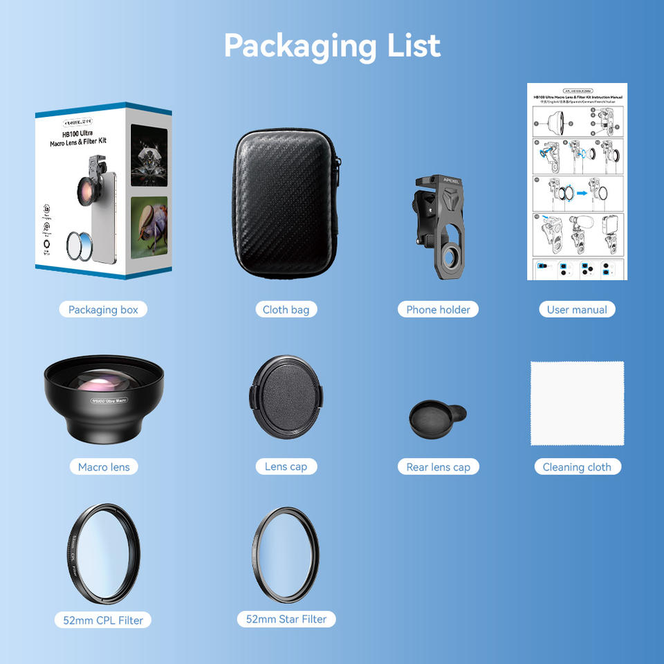 Nom du produit:Apexel 100MM Ultra macro lentille avec CPL et filtre étoile