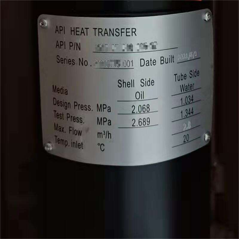 Échangeur de chaleur à calandre API, huile-eau, 2,068 Mpa, acier au carbone, équipement industriel