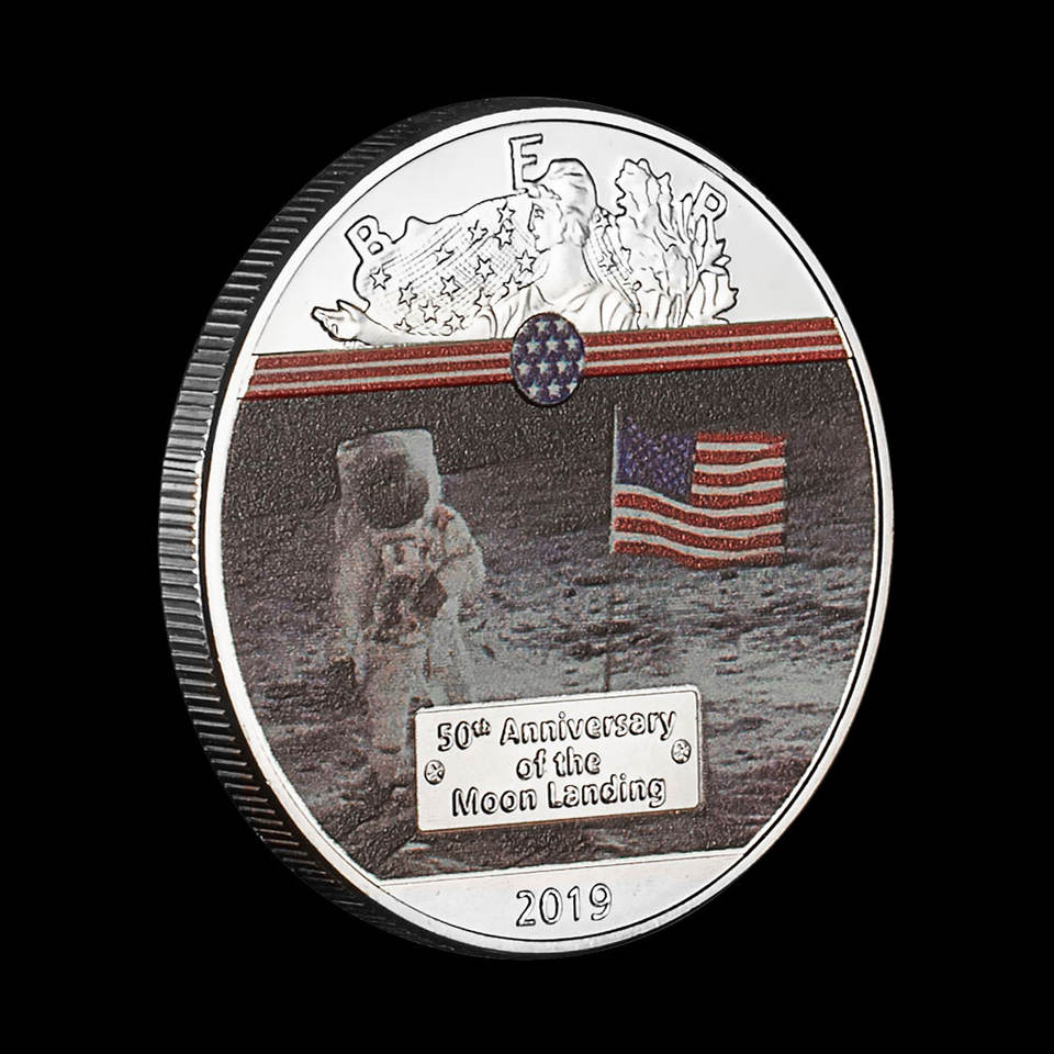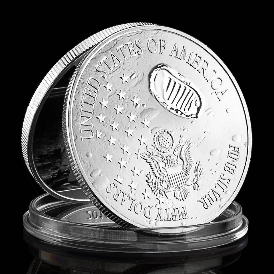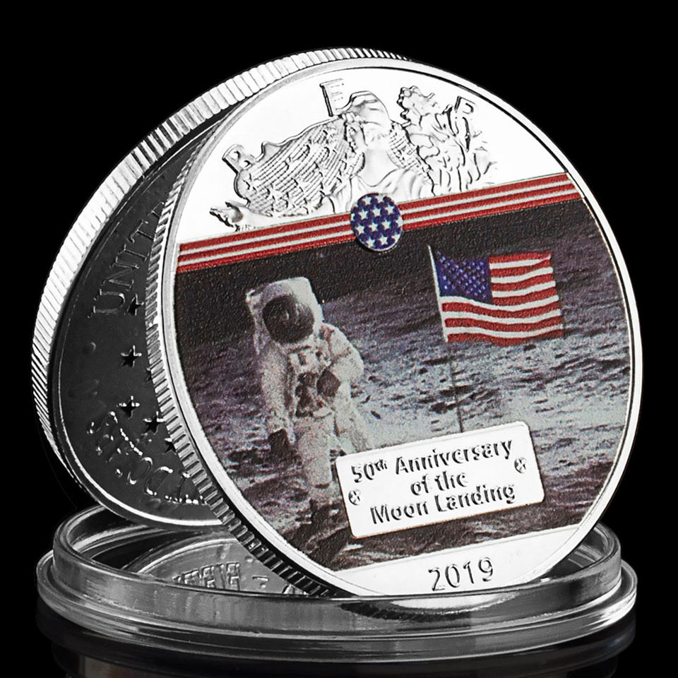 Pièce commémorative Apollo 11 50e anniversaire 2019 plaquée argent, souvenir de collection, cadeau pour exposition à domicile