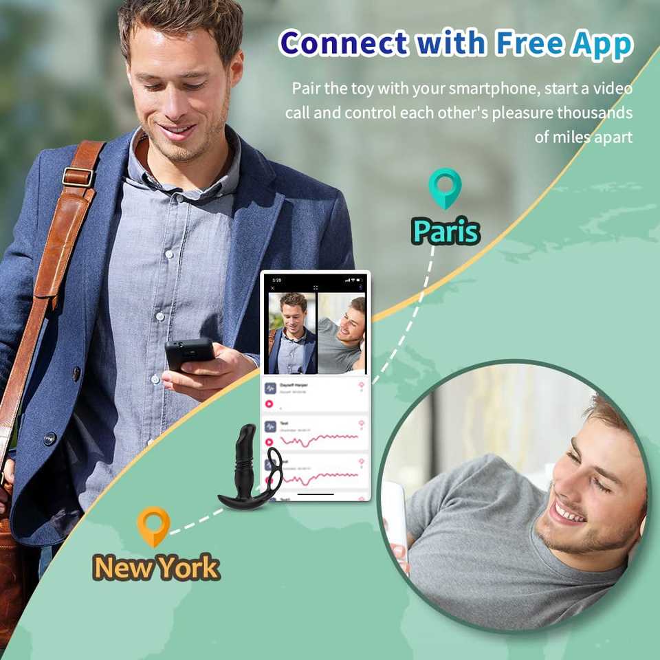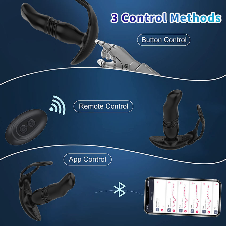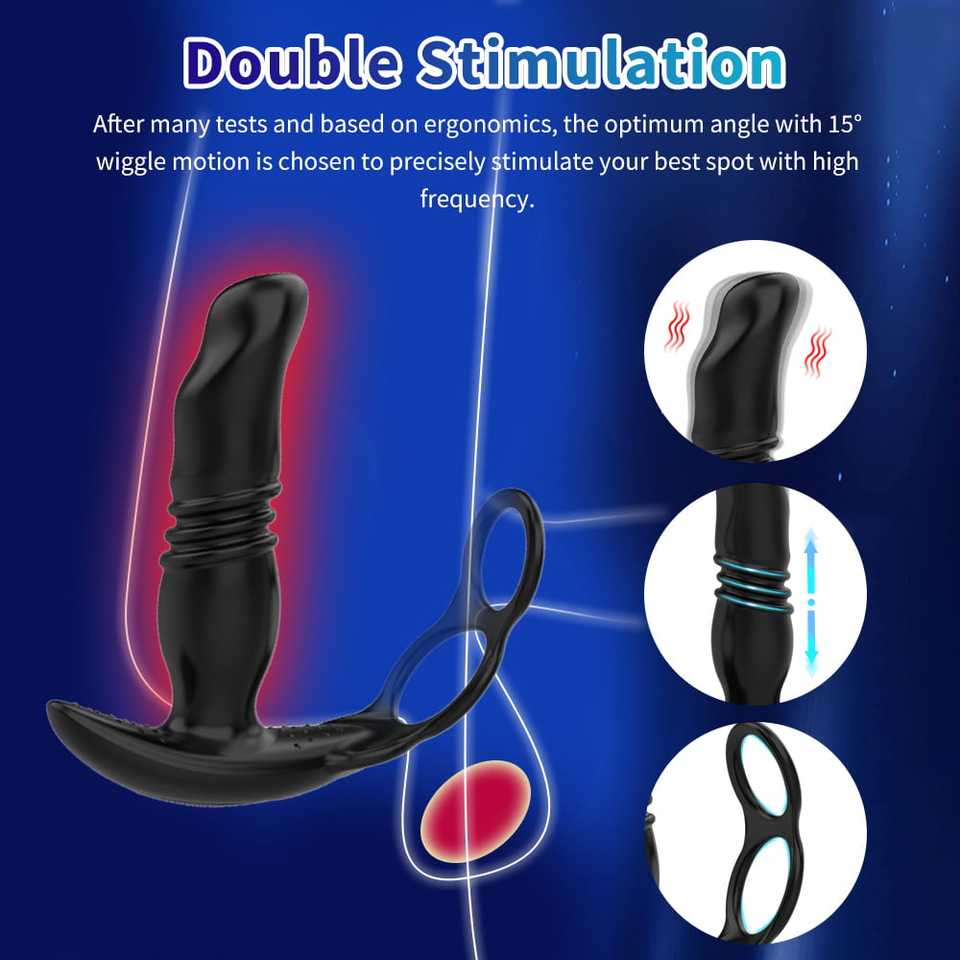 Vibrateur anal à double anneau pour homme gay, télécommande Bluetooth, gode télescopique, plug anal, massage de la prostate, retardateur