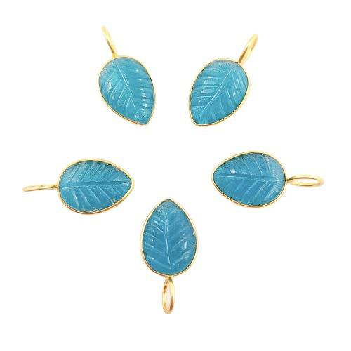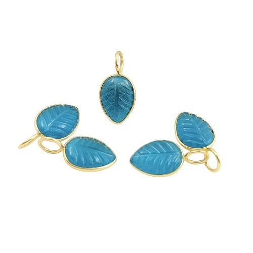 Apatite Quartz Feuille Forme Pendentif Sculpté À La Main Pierre Naturelle 925 Argent Sterling Plaqué Or 10x14mm Tiers Certifié
