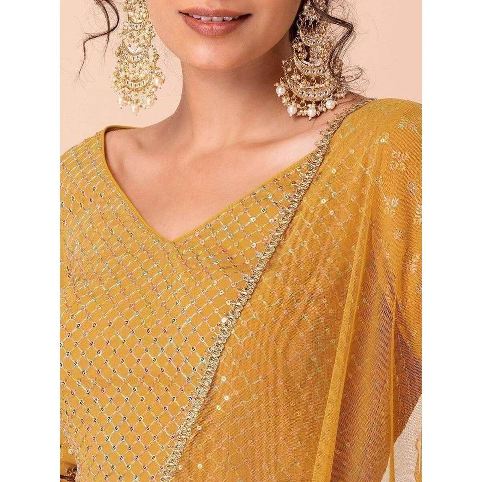 Paillettes jaunes attrayantes Georgette Haldi Wear Lehenga Choli
