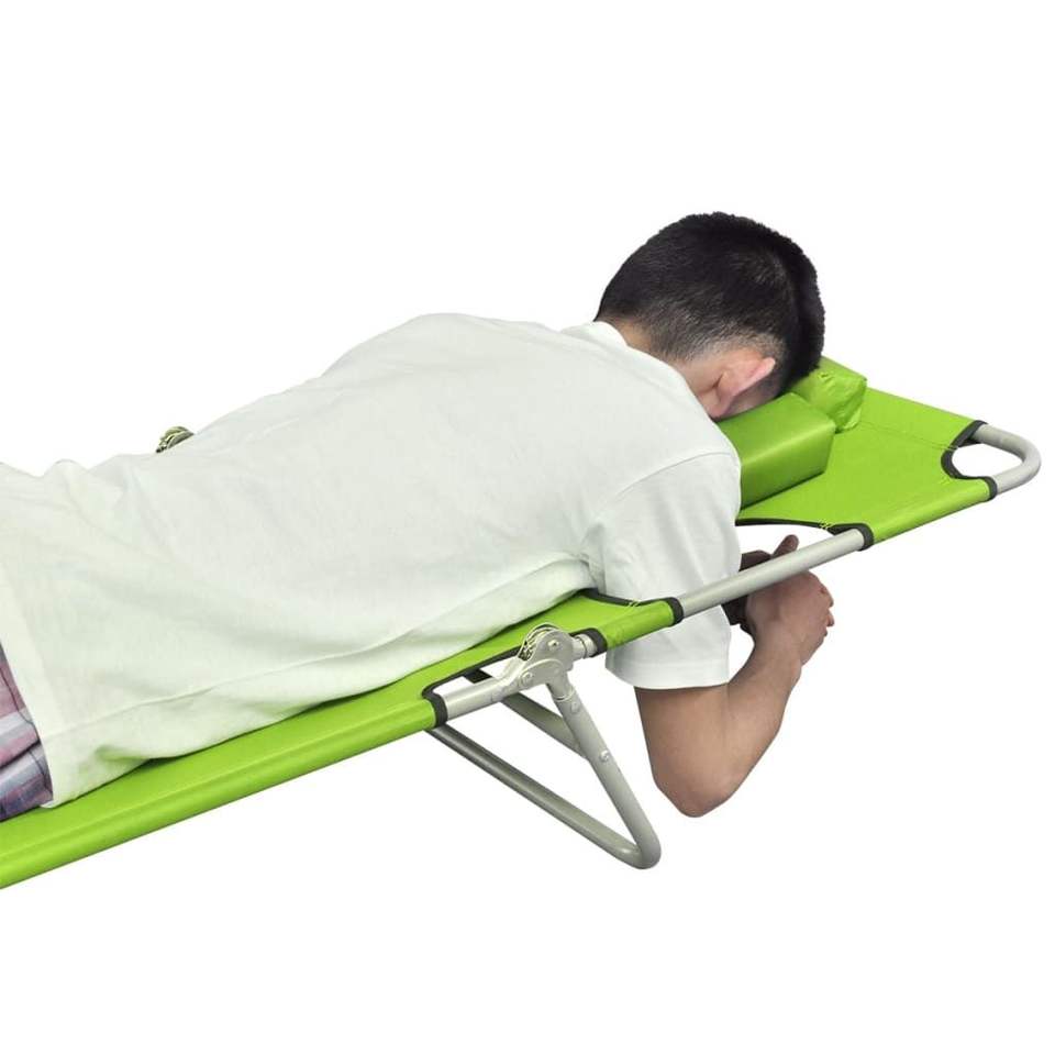 Chaise longue pliable en polyester vert pomme, grande et confortable, pour l'extérieur