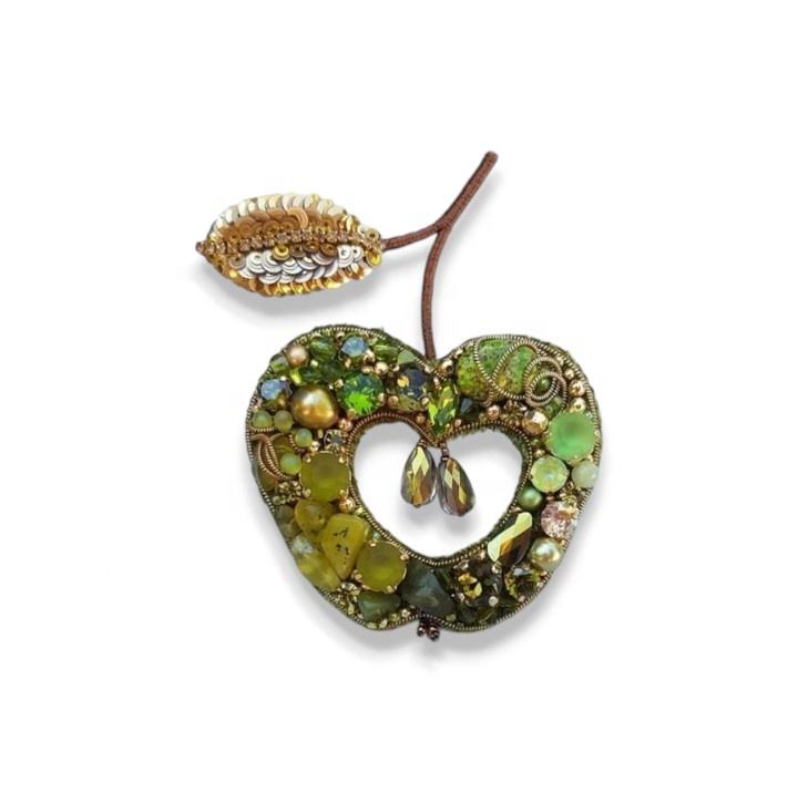 Broche en cuivre rouge en forme de pomme avec broderie à la main en cristal et perle et mode perlée en fil de fer pour cadeau de fête de mariage