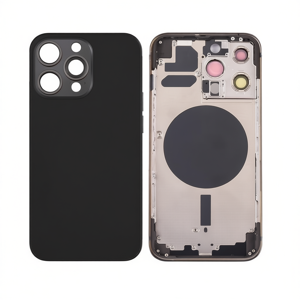 Coque arrière avec châssis pour Apple iPhone 13 Pro, noire, pièce de rechange