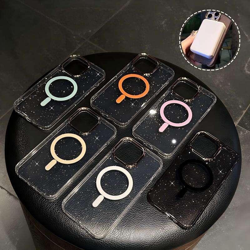 Coque de téléphone compatible avec iPhone 17 Pro Max, anneau de protection d'objectif magnétique électroplaqué à paillettes dorées pour coque transparente Apple 15