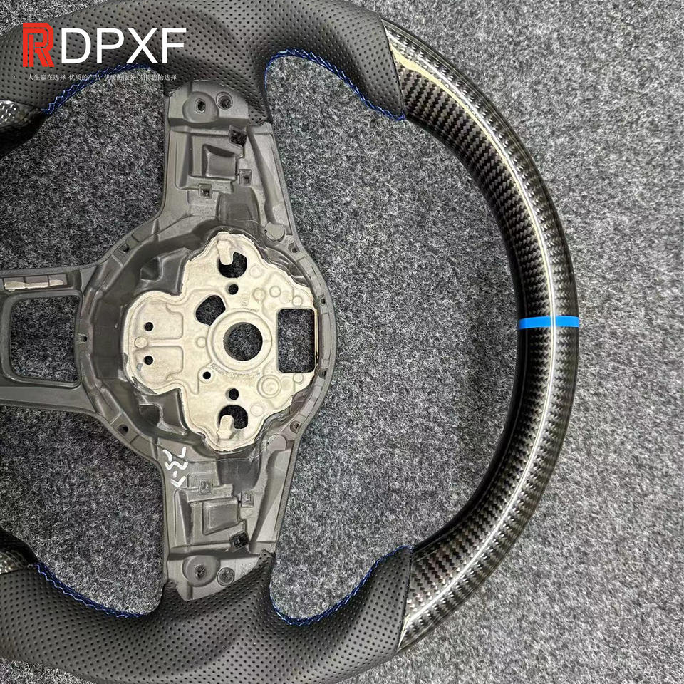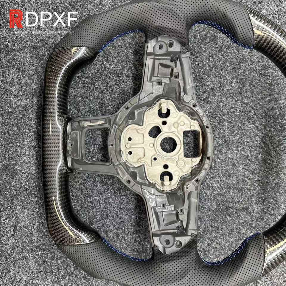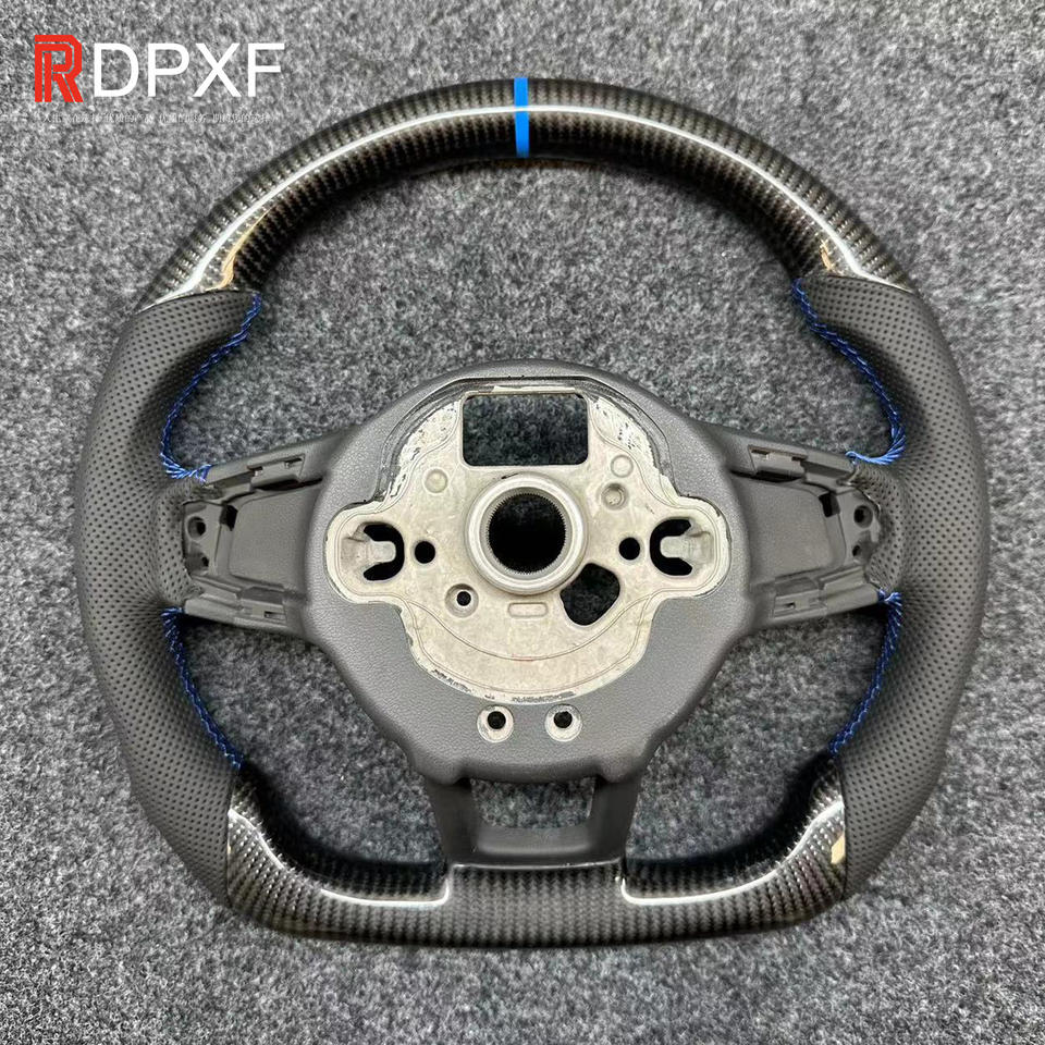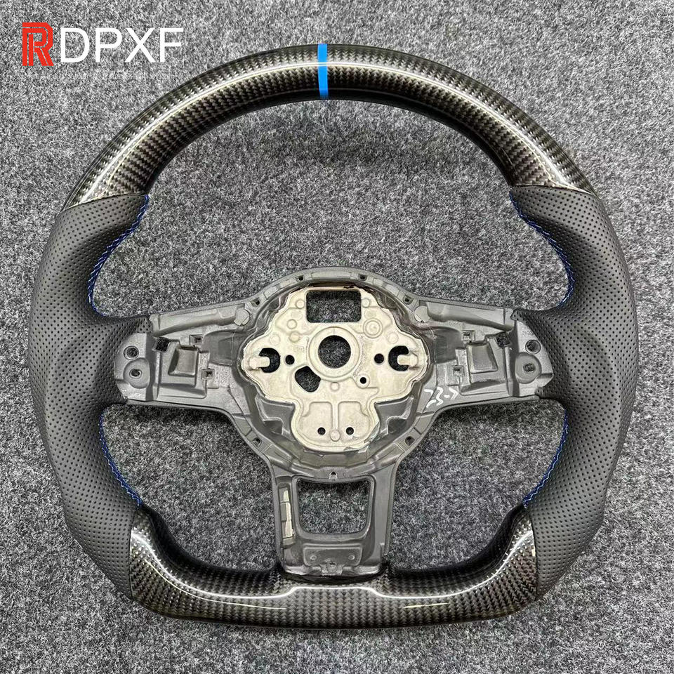 Applicable à Volkswagen Golf 7 Blue Logo Blue Stitch Modification du volant en fibre de carbone