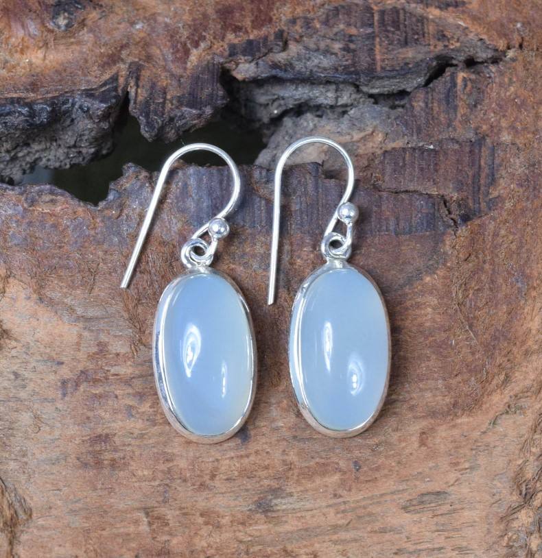 Product Name:Natural Aqua Chalcedony Gemstone Silver Earrings
