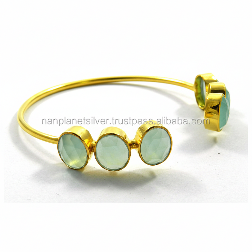 Aqua Calcedony Gemstone Bracelet ajustable Fine Chain & Link pour Cadeaux Fêtes Mariages