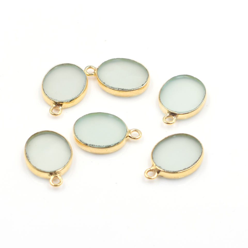 Nom du produit:Pendentif plaqué or avec lunette en argent de forme ovale en calcédoine aqua