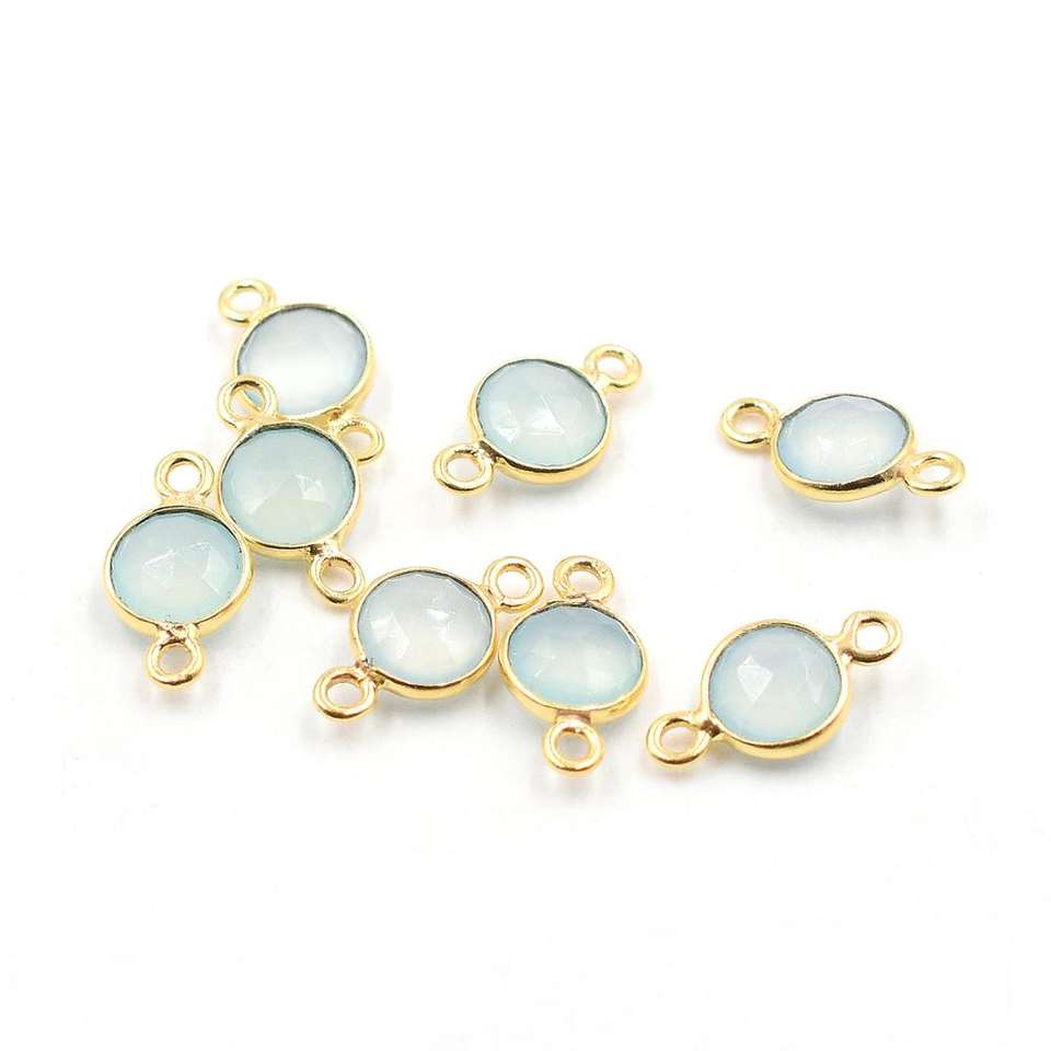 Aqua Chalcedony Round Shape 925 Sterling Silver Bezel 18K Gold Plated Handmade Connector Jewelry Making