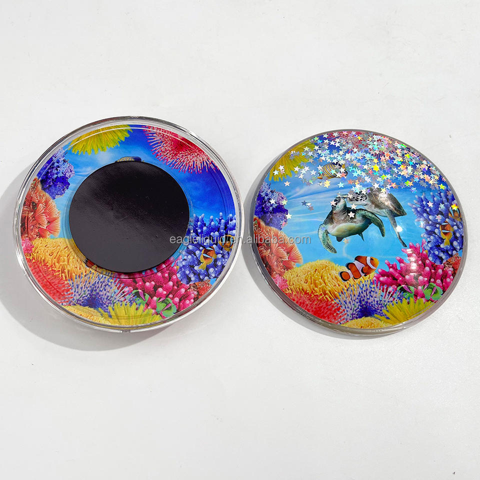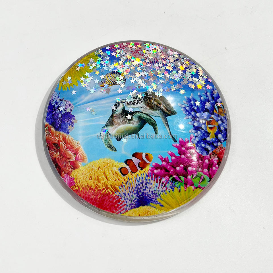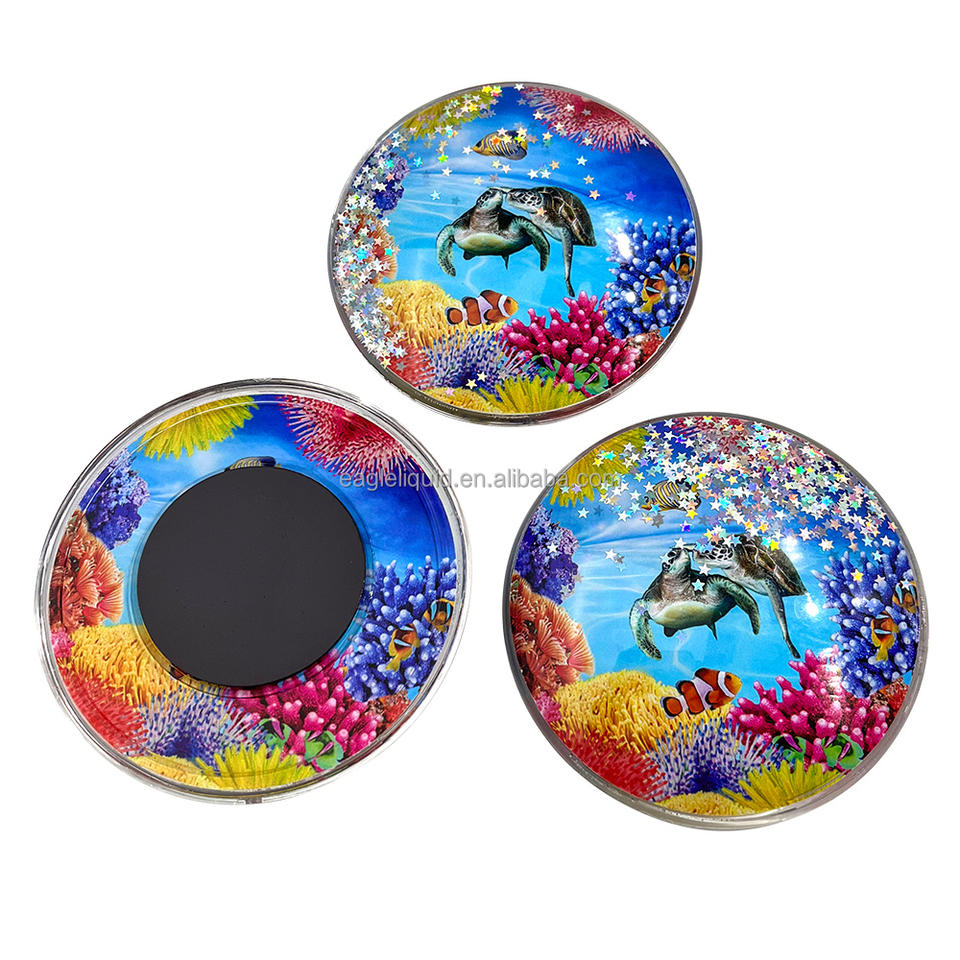 Aimant de réfrigérateur Aqua Dome, aimant liquide personnalisé avec poisson couronne, promotion, aimant de réfrigérateur flottant avec eau liquide, huile en mouvement