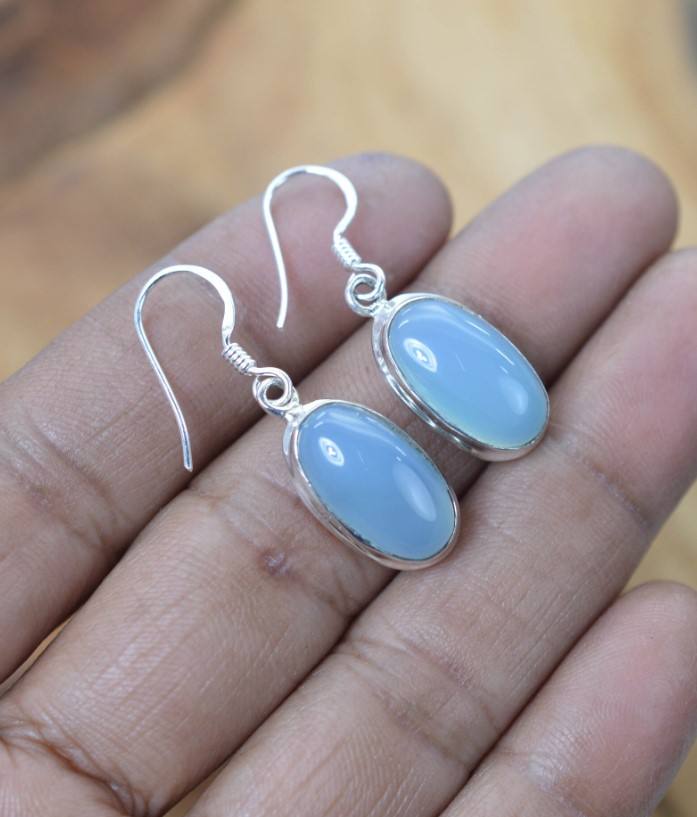 Product Name:Natural Aqua Onyx Gemstone Silver Earrings