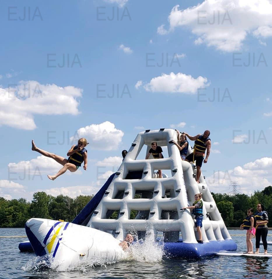 Glissière de pyramide gonflable Aqua Park, couleurs personnalisées, tour gonflable Jungle Joe flottant escalade