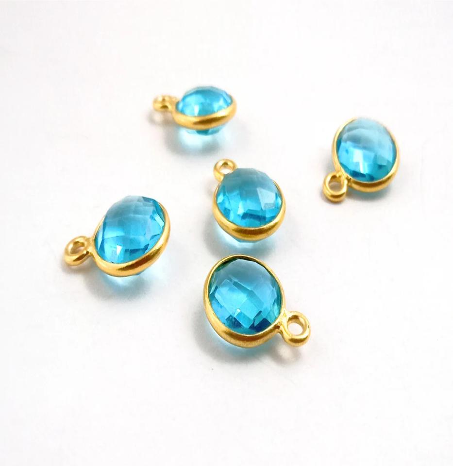 Pendentif de pierre précieuse de forme ronde en quartz aqua ensemble de lunette minuscule charme de pierre de style vintage pour les enfants inspiration religieuse chrétienne