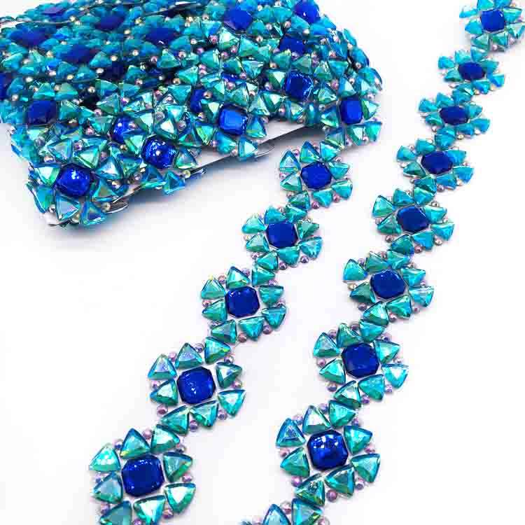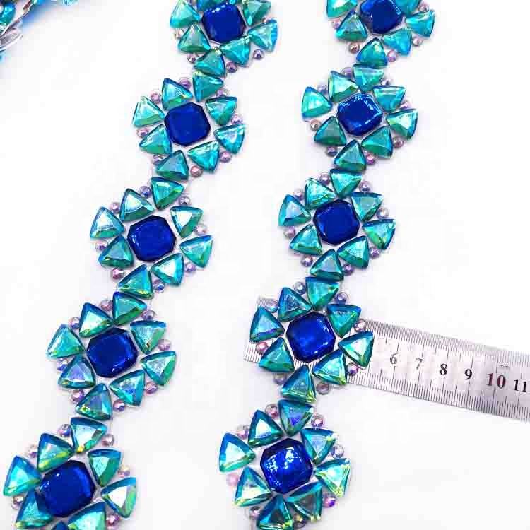 Nom du produit:Garniture de motif de fleur de strass Aqua