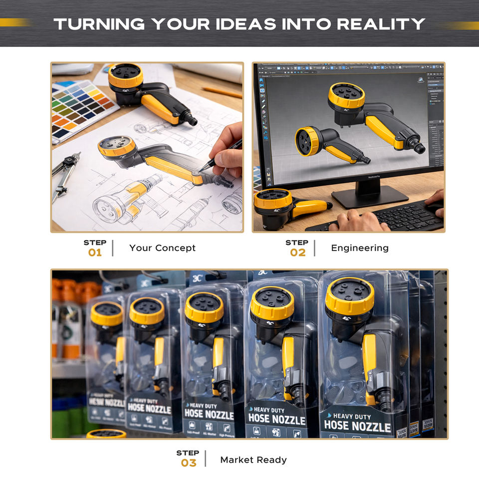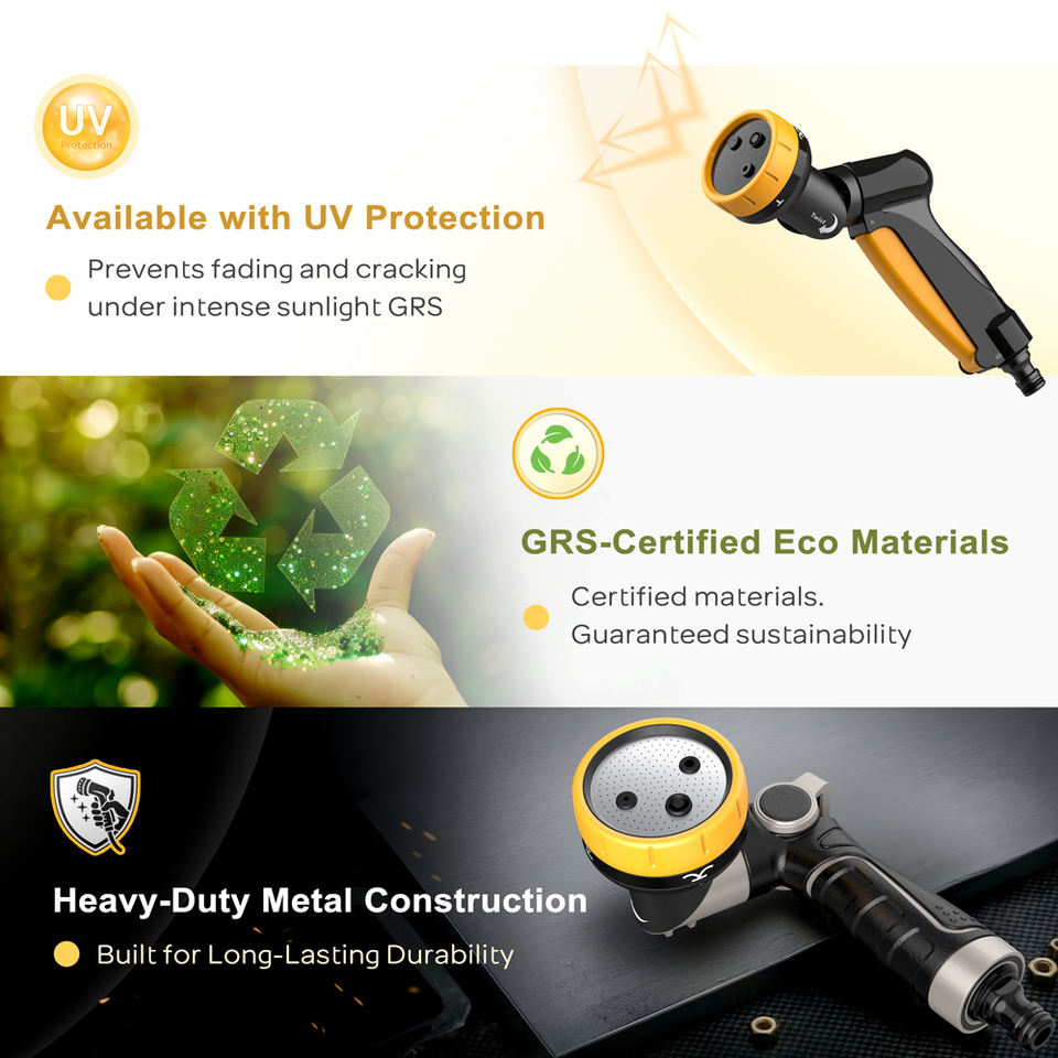 Buse de tuyau d'arrosage en alliage de zinc + TPR pour le nettoyage de la terrasse, conception ergonomique robuste avec motif de poignée à motif de pouce