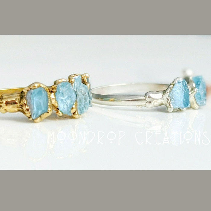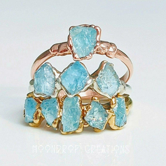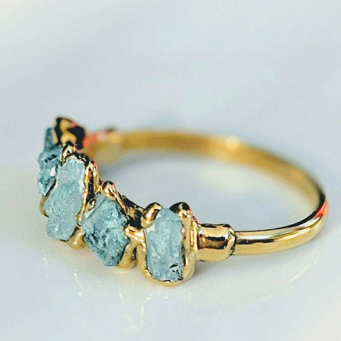 Bagues en plaqué or brut aigue-marine bijoux galvanisés en pierres précieuses bagues minimalistes bague en plaqué or brut naturel