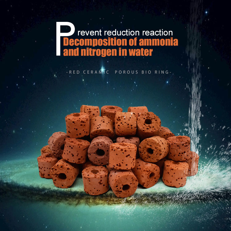 Anneau de bactéries d'aquarium avec filtre en céramique rouge avec maison en verre respirant pour aquarium en boîte
