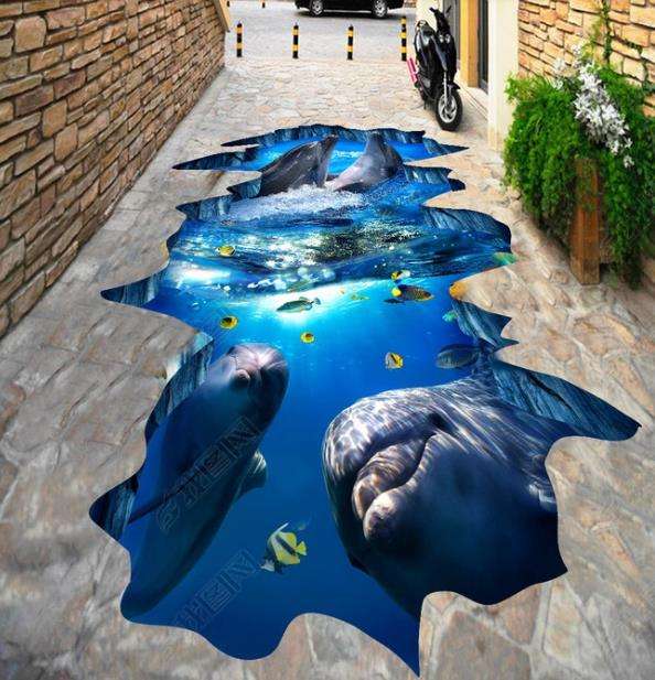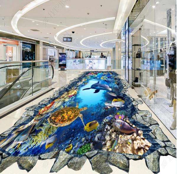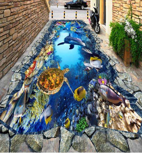 Autocollant de sol 3D en époxy à motif d'aquarium, autocollant de sol 3D magique de grande taille