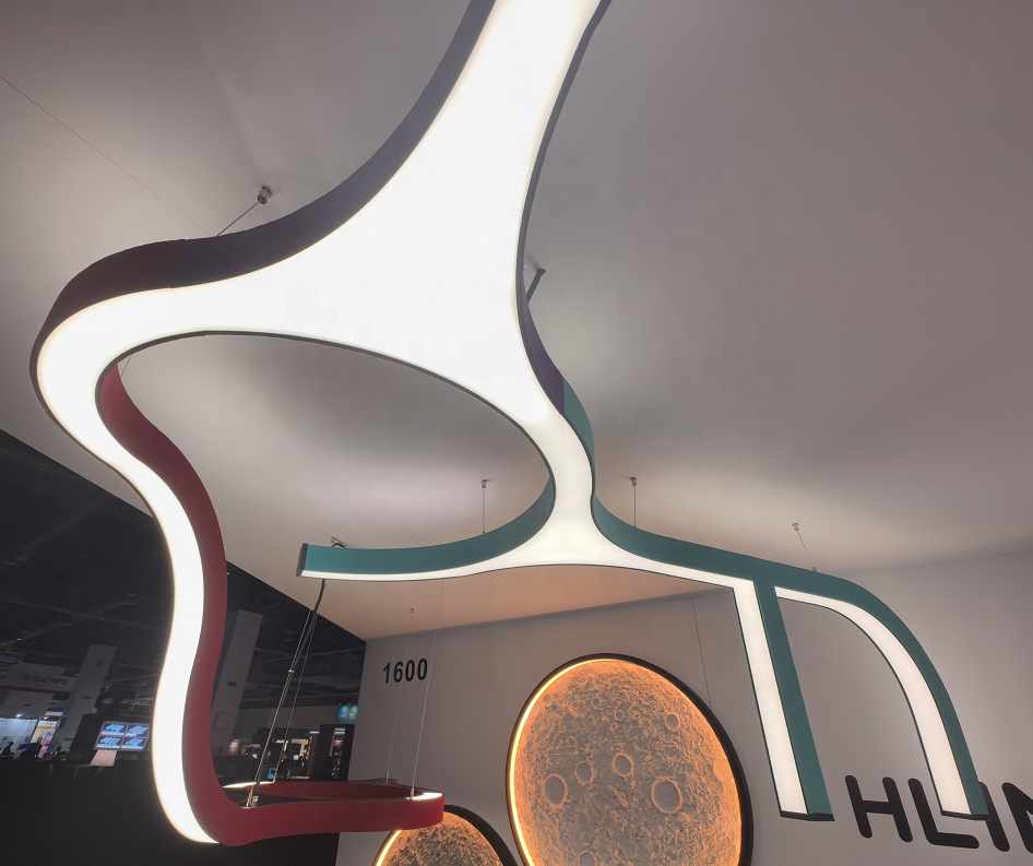 Plafonnier LED RGB Commercial Aquarius Créatif Ovale Petit Aluminium DMX512 Gradation Télécommande Installation 3D