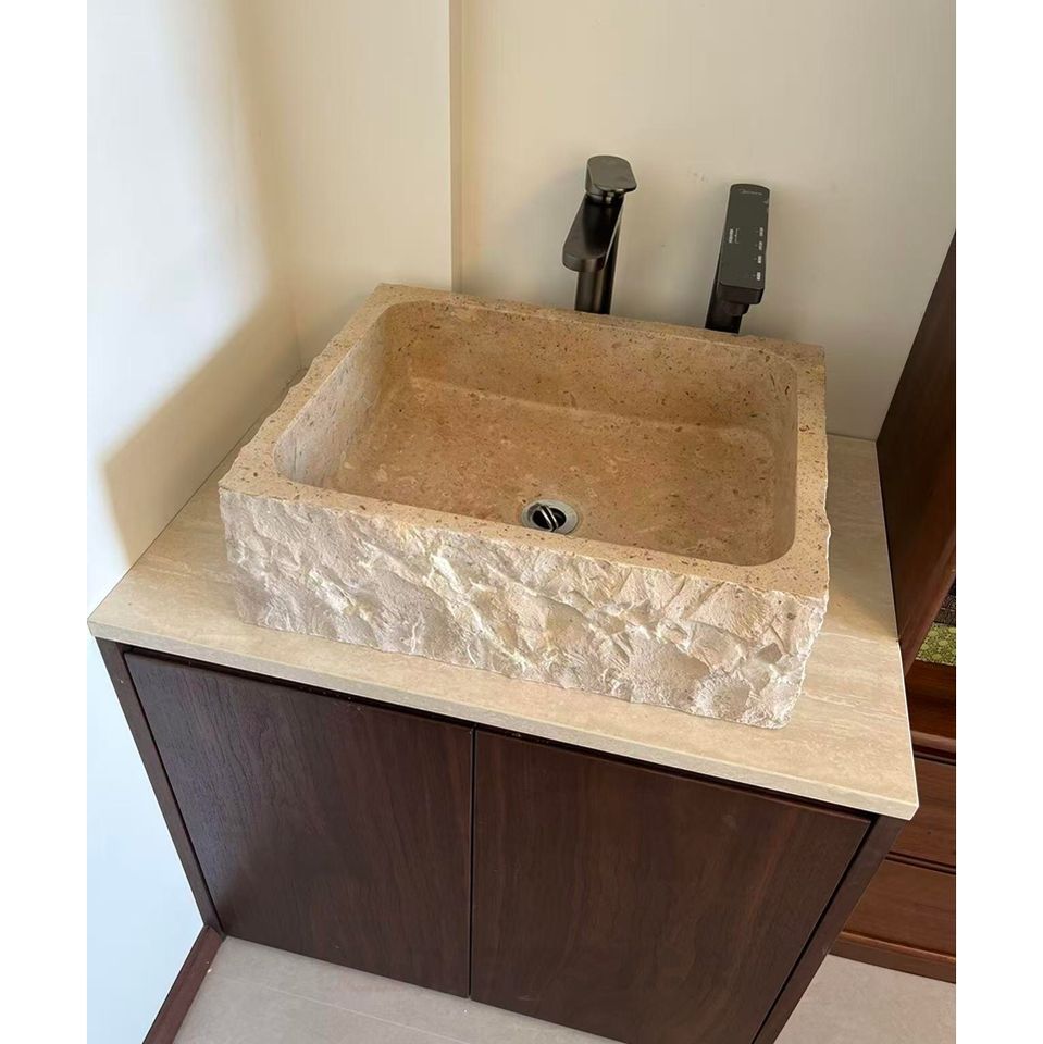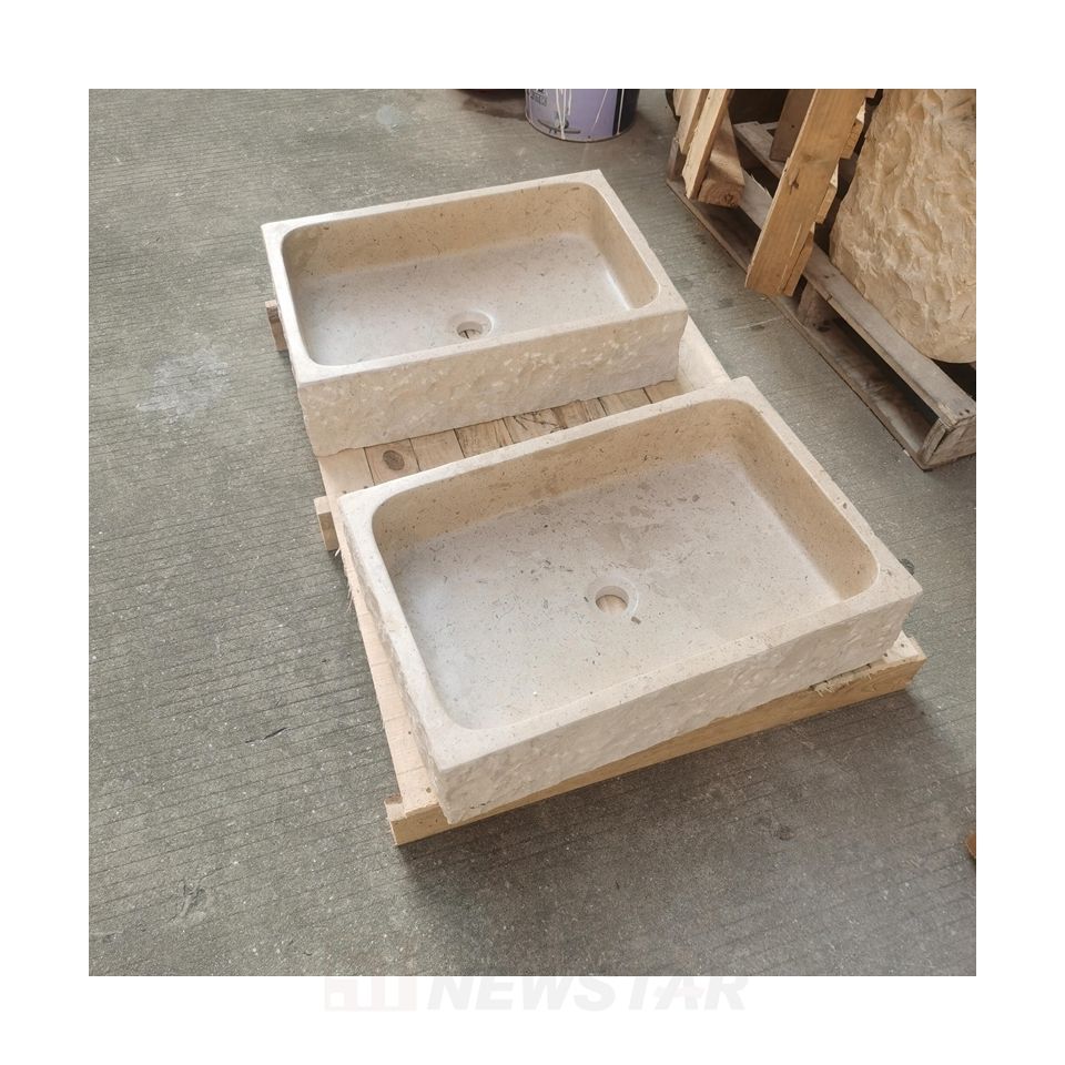 Évier de cuisine en pierre naturelle Aquarius, design à cuve unique, couleur crème, évier rectangulaire en pierre, vente en gros