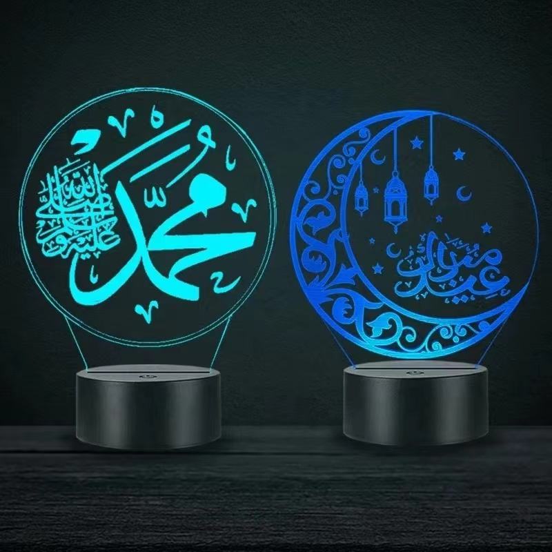 Lampe de bureau décorative en acrylique à LED arabe Allah Muhammad Musulman Islam Coran USB