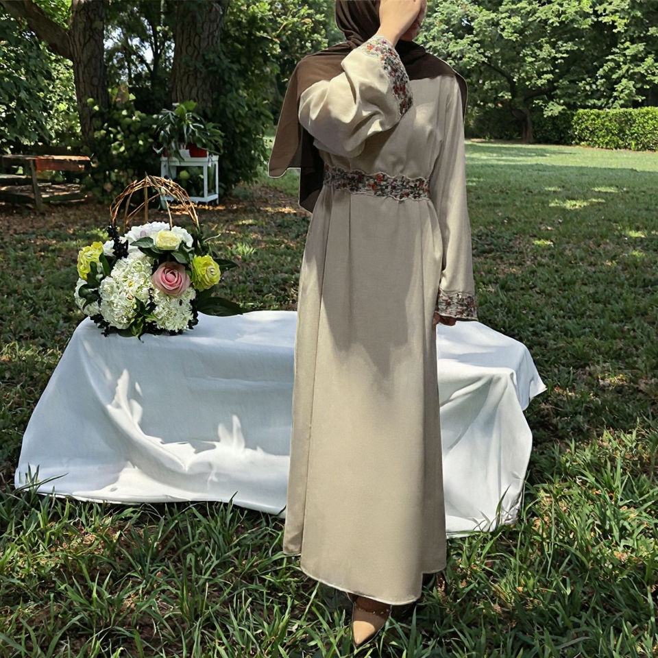 Robe longue en rayonne de Dubaï avec ceinture, pour femmes musulmanes, abaya brodée de fleurs, ample, style marocain, robe saoudienne, hiver et été