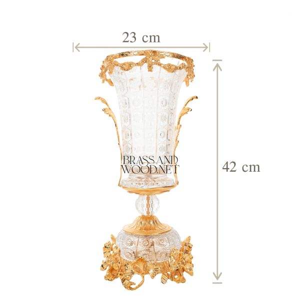 Vase Arabesque en cristal gravé à la main avec détails en laiton massif doré