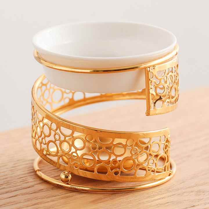 Brûleur à huile en céramique et métal doré de luxe arabe, fait à la main, porte-encens romantique, exquis, à base de bois, pour la décoration de la maison