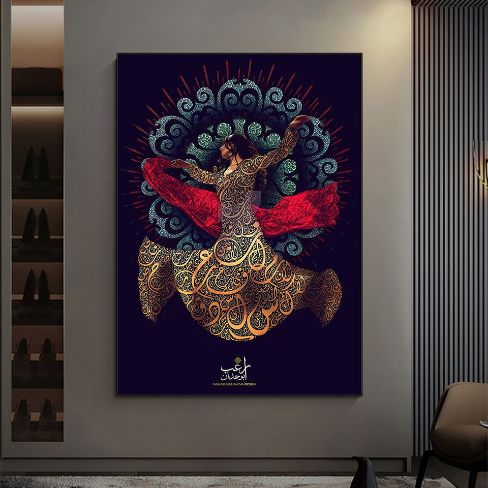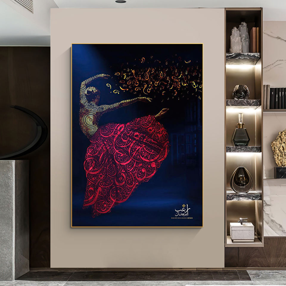 Calligraphie arabe toile peinture danseuse soufisme islamique Art religieux affiche maison peinture décorative