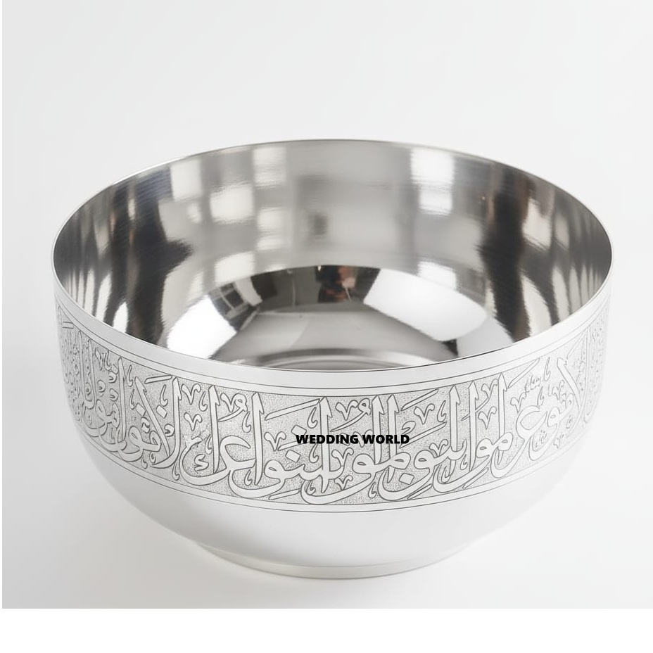 Bol à chocolat en métal avec calligraphie arabe, argenté brillant, décoration de table pour le ramadan, bol à chocolat de luxe, mariages du Golfe