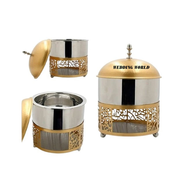 Pot en métal au design arabe Offre Spéciale Casserole de luxe faite à la main de créateur Chauffe-plat de table en acier inoxydable de forme ronde