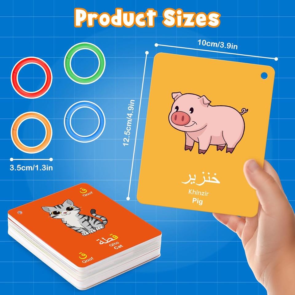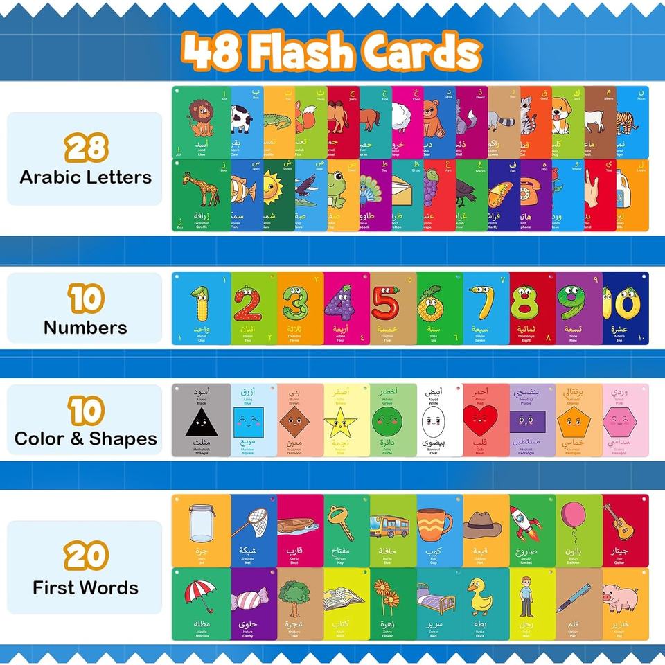 Cartes Flash d'apprentissage de l'arabe pour enfants tout-petits débutants adultes avec translittération anglaise chiffres de l'alphabet arabe couleurs